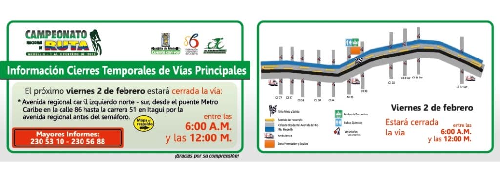 El epicentro será Medellín con dos días de competencia en los que la gran afición del país podrá disfrutar con la presencia de Rigoberto Urán, Fernando Gaviria, Sergio Luis Henao, Sebastián Henao, Egan Bernal, Járlison Pantano, Álvaro Hodeg, Daniel Martínez, Jánier Acevedo, Daniel Jaramillo, Carlos Alzate, Edwin Ávila, Sebastián Molano, Jordan Parra, Fabio Duarte y Miguel Ángel López, quien pese a no poder estar en la carrera Colombia Oro y Paz, del 6 al 11 de febrero, empezará su temporada oficial en Colombia realizando las dos pruebas dispuestas en el calendario.