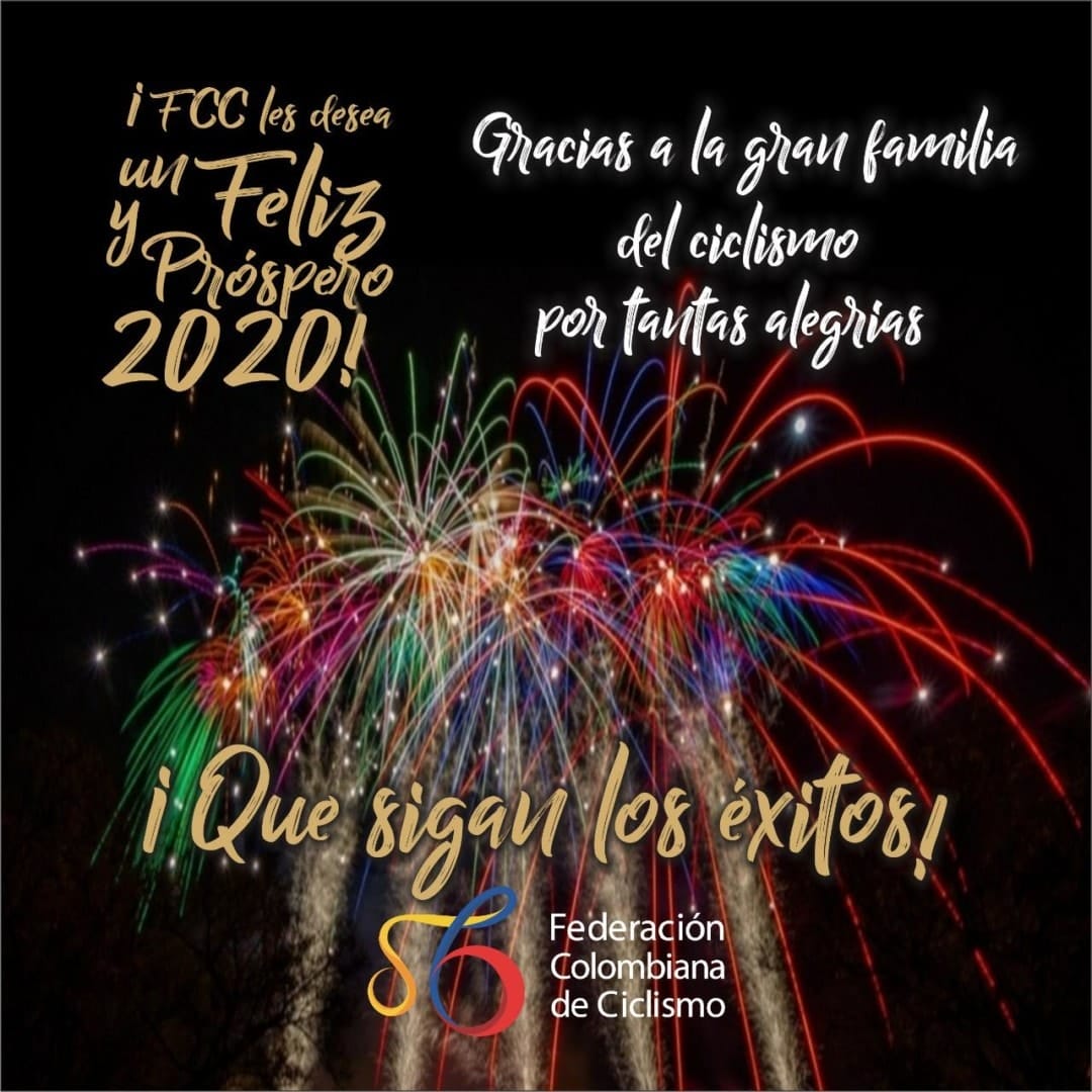 La Federación Colombiana de Ciclismo, presidida por Jorge Mauricio Vargas Carreño, el comité ejecutivo y sus funcionarios, desean un feliz y próspero 2020 a toda la gran familia del ciclismo representada en afición, patrocinadores, instituciones y medios de comunicación que nos han acompañado durante toda la temporada contribuyendo al crecimiento y desarrollo constante del deporte más exitoso del país.