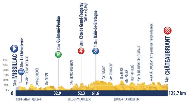 La carrera partirá en la localidad de Loudéac con un parcial en línea de 134 kilómetros.