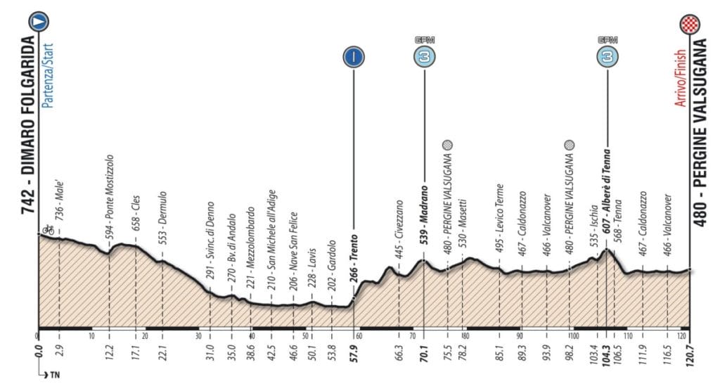 Por tal motivo, este miércoles partirán cinco corredores en la jornada de media montaña entre Dimaro Folgarida y Pergine Valsugana, fracción de 120.7 kilómetros con dos premios de tercera categoría.