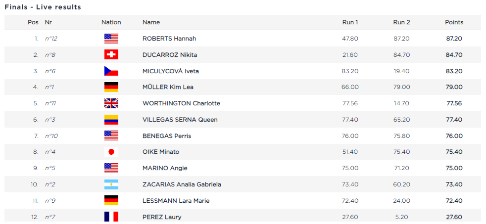 Resultados final BMX Freestyle Park – Abu Dabi 2022