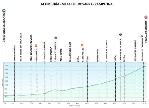 El evento organizado por la Federación Colombiana de Ciclismo contará en su recorrido con dos parciales cortos pero de gran atractivo por su dificultad montañosa. El primero de 76 kilómetros en la segunda jornada entre Villa del Rosario y el inédito final en Pamplona, lugar de nacimiento del último campeón de los novatos de la Vuelta a Colombia, Roosbelth Rojas. El segundo tendrá una distancia de 78 kilómetros con llegada a Barichara después afrontar los ascensos a Chiflas, Aratoca y el Común.