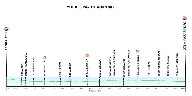 La carrera que se disputa simultáneamente para hombres de la categoría juvenil y damas élite, constará de cuatro etapas aptas para especialistas en todos los terrenos. Tres de los cuatro parciales tendrán como punto de partida Yopal, que abrirá el telón con una fracción de 94.5 kilómetros con final en la localidad de Paz de Ariporo.