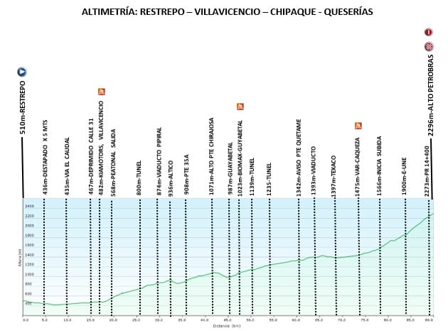 RECORRIDO: RESTREPO – VILLAVICENCIO – GUAYABETAL – PTE QUETAME – CÁQUEZA – BOMBA PETROBRAS 1000 MTS ANTES DE CHIPAQUE.