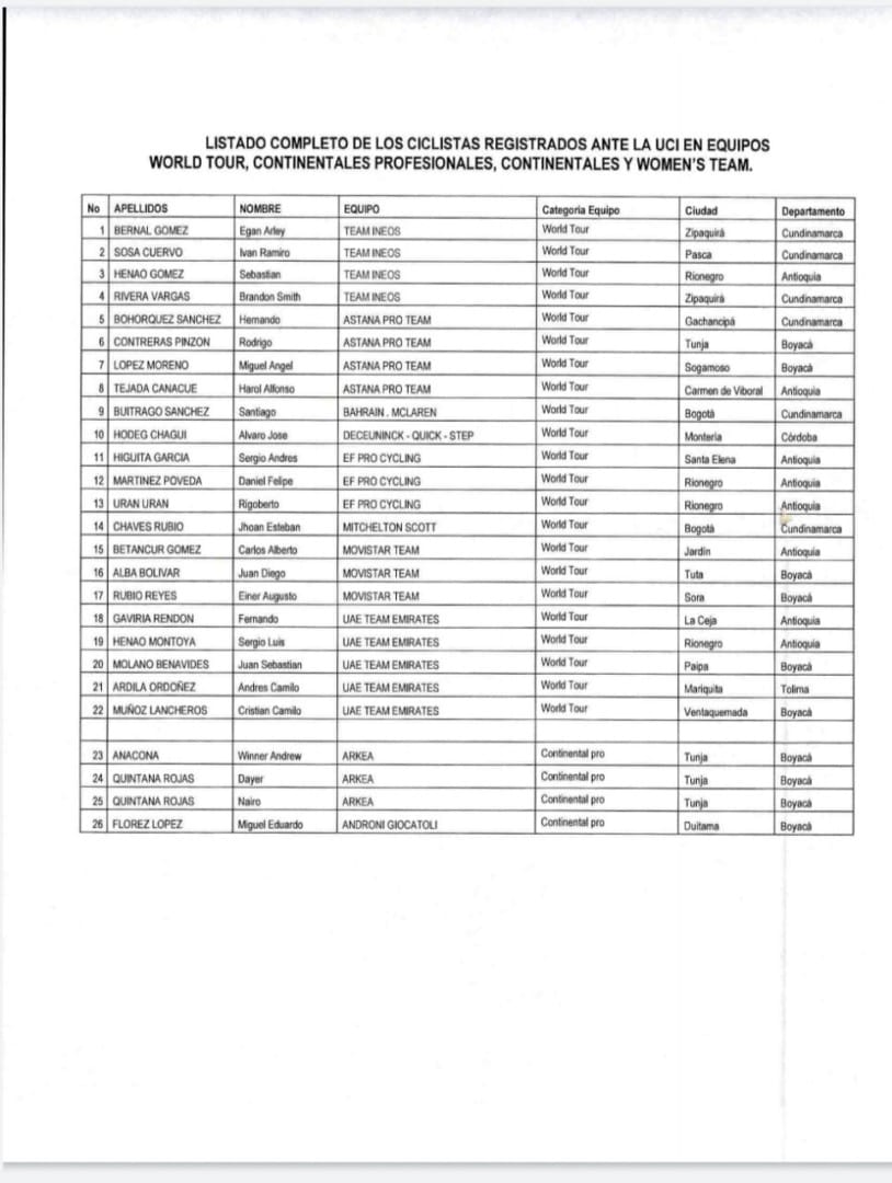 La circular de autorización de los ministerios habilitó, en primera instancia, un total de 111 ciclistas pertenecientes a las categorías World Tour, Pro Continentales y continentales UCI (damas y varones).