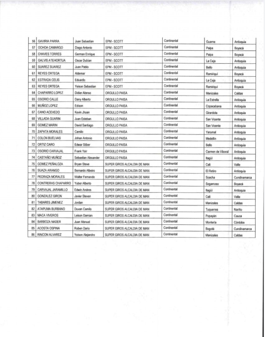 LISTA DE CICLISTAS HABILITADOS POR LOS MINISTERIOS: