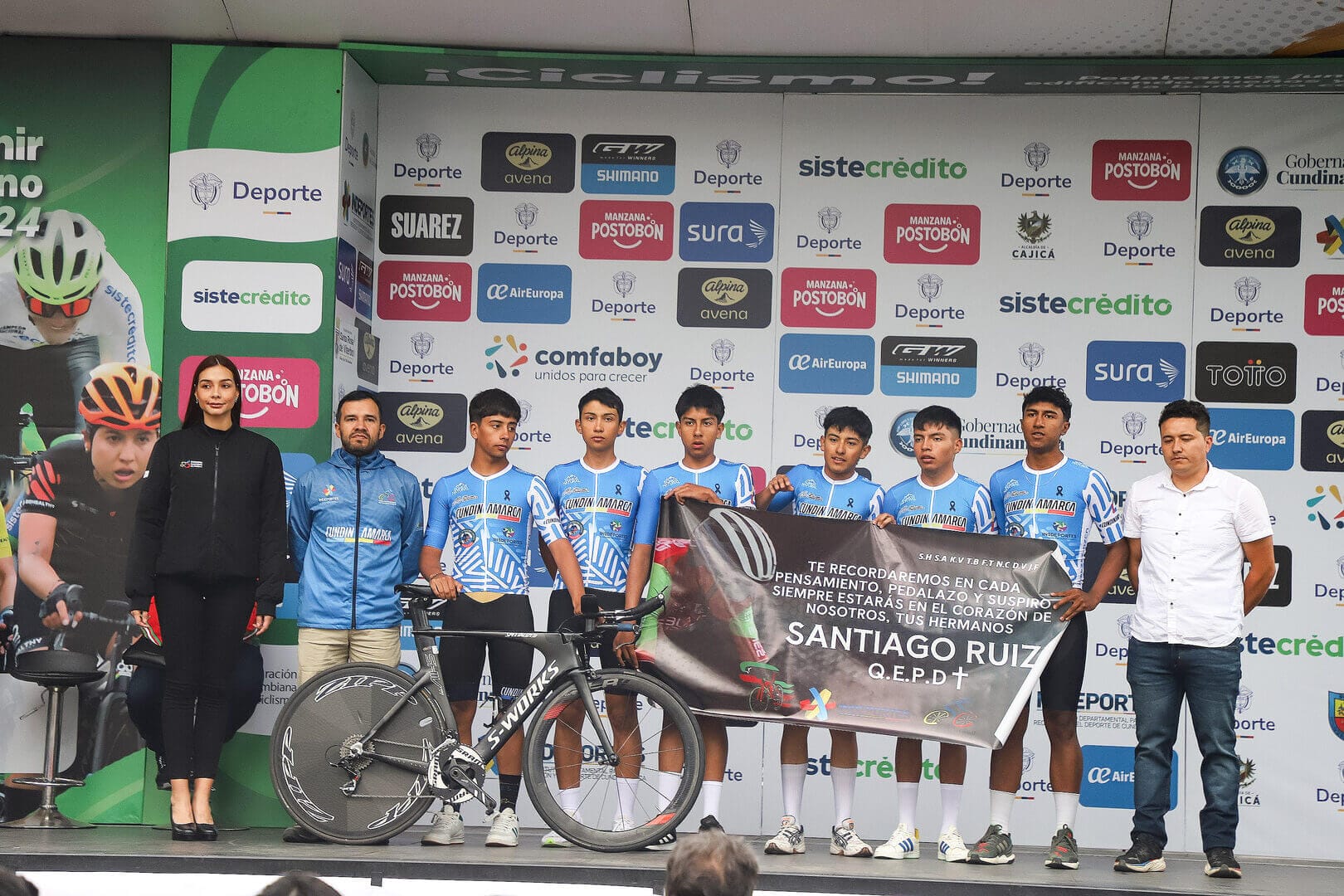 En la presentación de equipos, las escuadras de Cundinamarca, tanto en los varones juveniles de la Vuelta del Porvenir, como las damas del Tour Femenino, rindieron homenaje a la memoria del joven ciclista oriundo de Soacha, Santiago Ruiz, quien perdió la vida en un entrenamiento previo a la carrera.